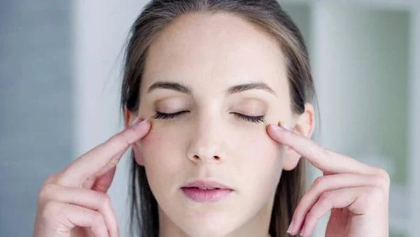 - Lấy 3 ngón tay giữa đặt lên trên mắt rồi nhẹ nhàng xoay tròn.