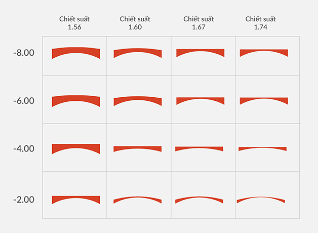 Tròng kính chiết suất càng cao thì sẽ càng mỏng, nhẹ